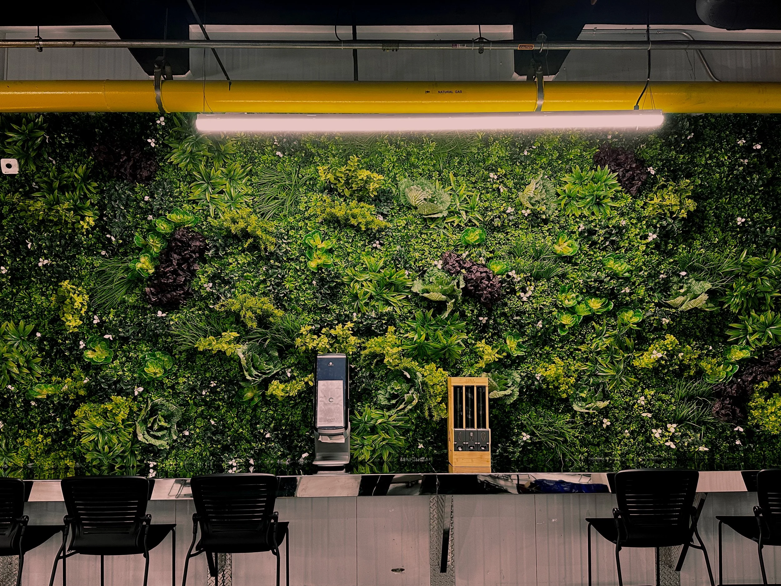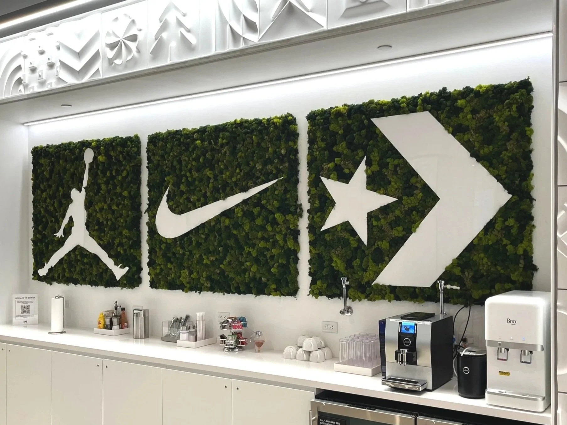 Yes. We offer both live and faux plant options, as well as preserved moss walls. Many clients choose a mix of live and faux depending on the lighting and maintenance preferences for each area of their space.